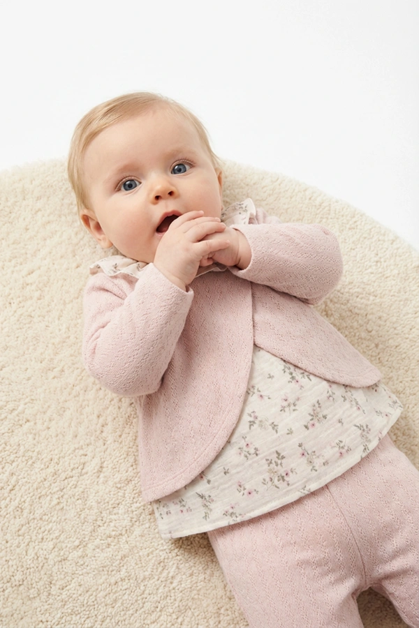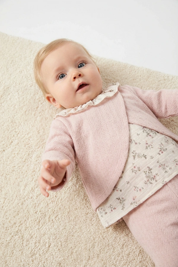 | Meteryal | Hırka - %50 Pamuk %25 Viskon %28 Keten Pantolon - %85 Pamuk %15 Keten Bady - %100 Pamuk |